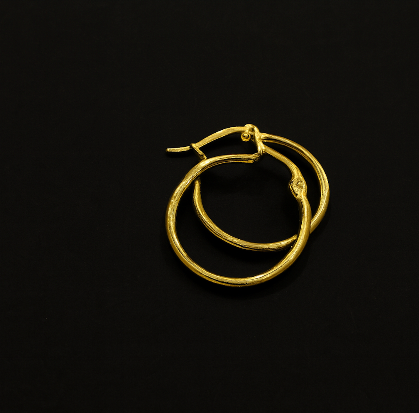 Un gesto de sol atrapado en movimiento. Estos pendientes de aro, bañados en un sutil flash de oro, evocan la energía vibrante del continente africano: su luz intensa, sus ritmos ceremoniales, su fuerza ancestral. El diseño, de líneas limpias y presencia rotunda, celebra el círculo como símbolo de continuidad, comunidad y legado.