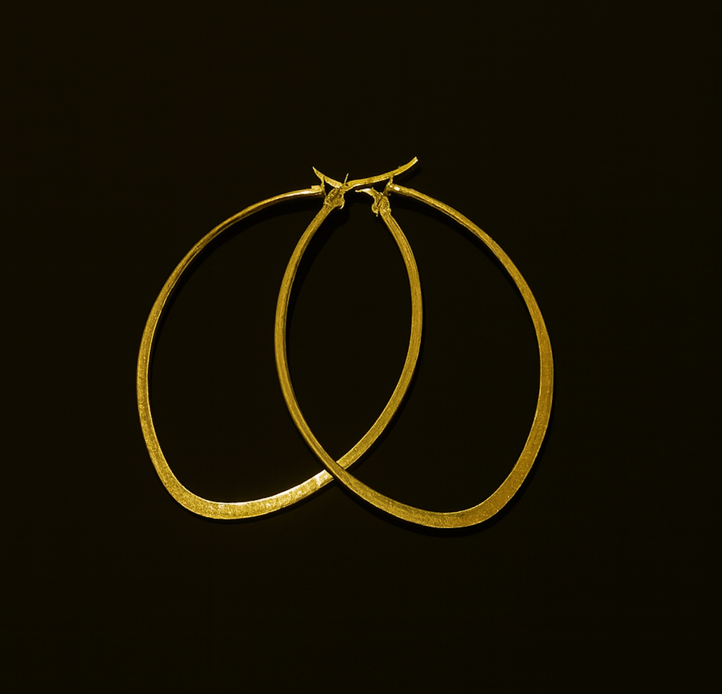 Un gesto de sol atrapado en movimiento, con forma ovalada. Estos pendientes de aro oval, bañados en un sutil flash de oro, evocan la energía vibrante del continente africano: su luz intensa, sus ritmos ceremoniales, su fuerza ancestral. El diseño, de líneas limpias y presencia rotunda, celebra el círculo como símbolo de continuidad, comunidad y legado.