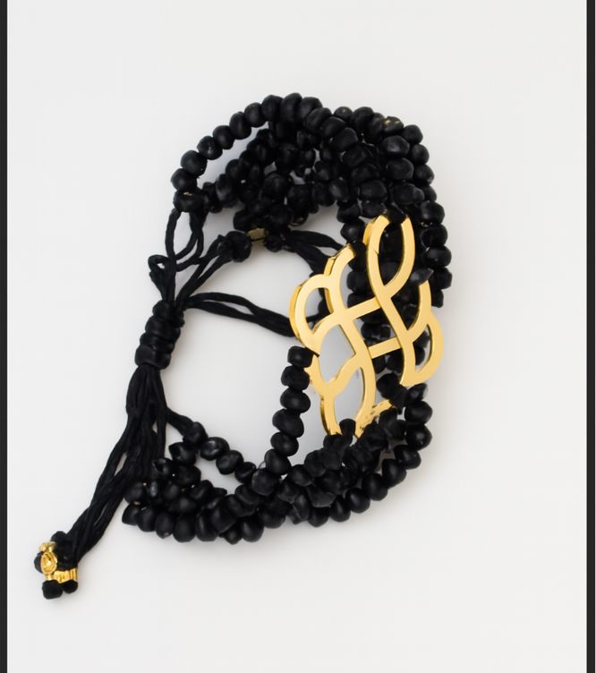 Brazalete de cristal Murano color negro – Pieza central decoración con baño oro brasileño